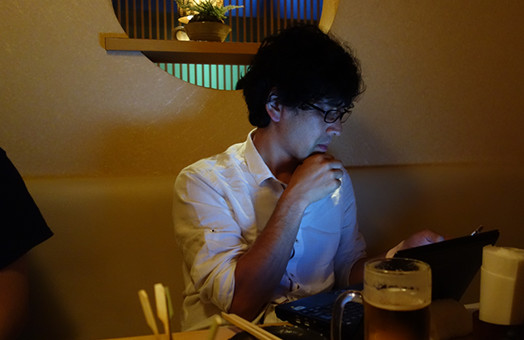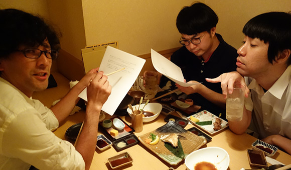 最初の打ち合わせから1週間以上経ち、「プロトタイプ」を持ってきてくださるというので、「ナンセンスマシーン展」終わりの土佐社長と半個室の居酒屋で打ち合わせをすることに。「すみません、まだ出来てないんですよ…」個展では朝の開場から閉場するまで出ずっぱりまで頑張る社長。本当にお疲れなようで、このあと、座ったまま夢の世界へお帰りになりました。